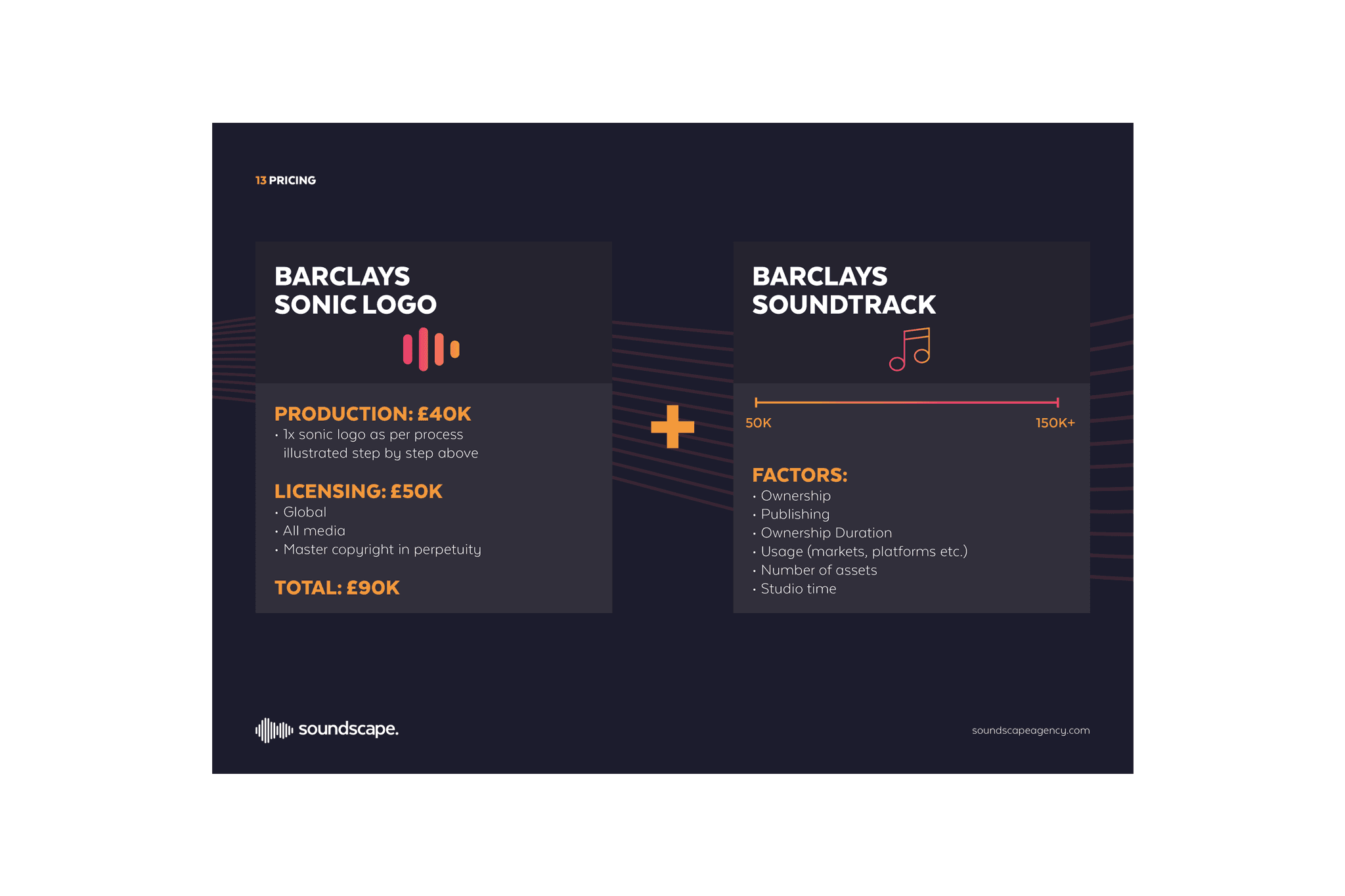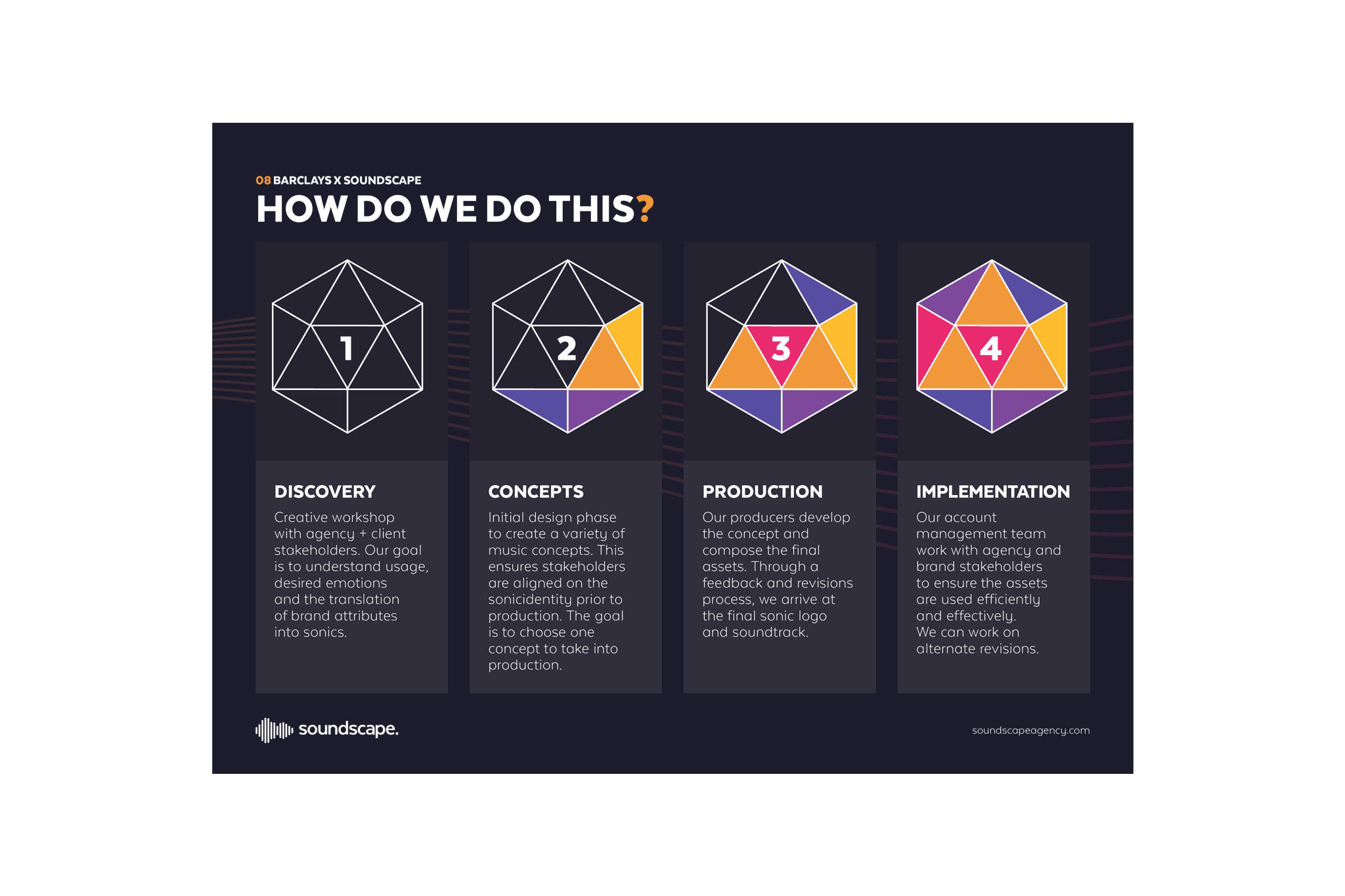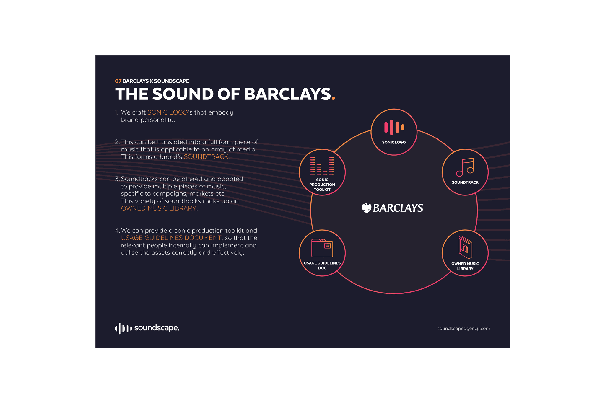 Powerpoint pitch presentation for Soundscape agency that produces high-quality music for advertising, broadcasting, and film.